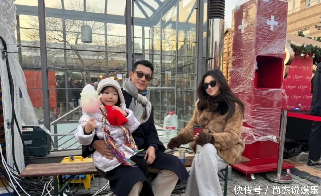 41岁的朱珠一家逛集市,有白发了,貂皮大衣溜光水滑 真贵气